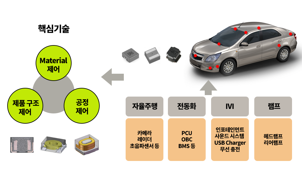 모든 전자 기기와 자동차 전자 기기 등에 필수적인 소재 부품을 개발하여 생산합니다.